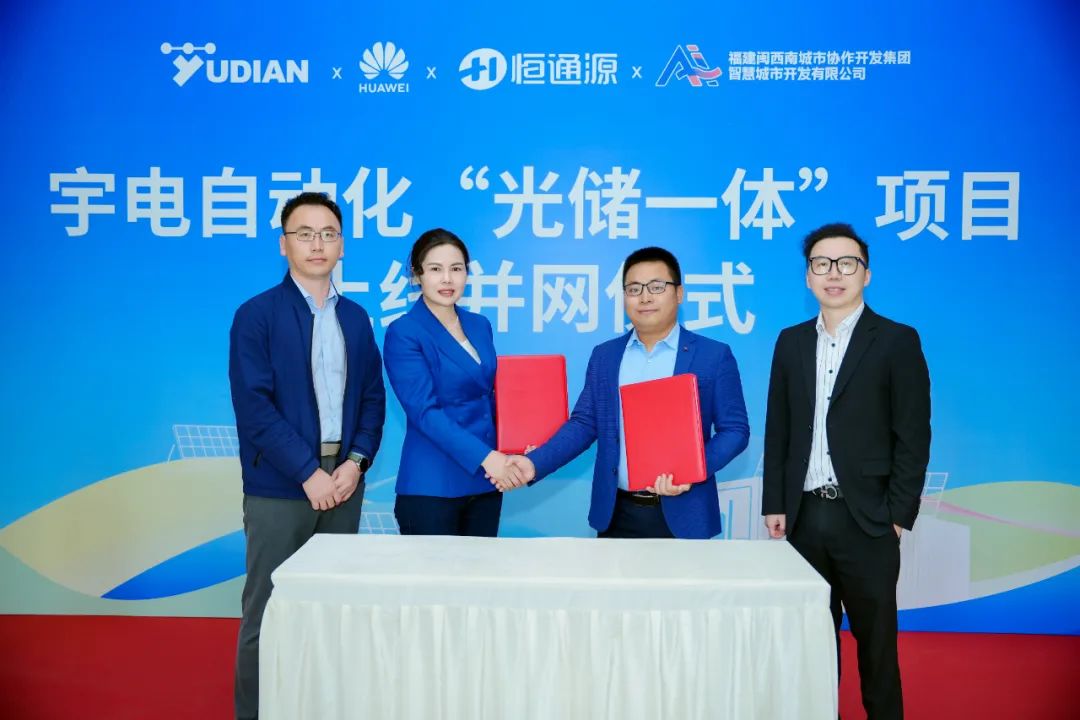 3月21日,宇電“光儲一體”項目正式上線(xiàn)并網(wǎng),并與華為簽訂合作協(xié)議,雙方將攜手踐行綠色環(huán)保理念,助力低碳高質(zhì)發(fā)展。萬(wàn)象更新時(shí),共筑綠能夢(mèng)想,同繪低碳未來(lái)。3月21日下午,宇電“光儲一體”項目正式上線(xiàn)并網(wǎng),該項目是華為在全國范圍內首個(gè)落地的企業(yè)并離網(wǎng)儲能標桿項目,此次合作不僅體現了宇電對于推動(dòng)綠色能源發(fā)展的堅定承諾,也展示了宇電與華為對建設綠色美好未來(lái)的共同追求。華為福建數字能源智能光伏產(chǎn)業(yè)總經(jīng)理劉敏強、華為福建數字能源智能光伏產(chǎn)業(yè)合作伙伴與生態(tài)發(fā)展部長(cháng)蔡林希,閩西南智慧城市總經(jīng)理張志宏及業(yè)務(wù)總監郜天誠等嘉賓出席儀式。 華為福建數字能源智能光伏產(chǎn)業(yè)總經(jīng)理劉敏強致辭華為福建數字能源智能光伏產(chǎn)業(yè)總經(jīng)理劉敏強表示,本次落成的光儲一體項目由宇電全額投資,在本行業(yè)中開(kāi)辟了先河,在廈門(mén)乃至福建的民營(yíng)企業(yè)中,也屬于綠色低碳發(fā)展的先鋒之舉。劉敏強介紹到,華為工商業(yè)逆變器全球累計出貨量持續保持市場(chǎng)領(lǐng)先,同時(shí)
