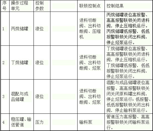 根據(jù)國(guó)家安全生產(chǎn)監(jiān)督管理總局發(fā)布的中華人民共和國(guó)安全生產(chǎn)行業(yè)標(biāo)準(zhǔn)《危險(xiǎn)化學(xué)品重大危險(xiǎn)源安全監(jiān)控通用技術(shù)規(guī)范》AQ3035-2010和《危險(xiǎn)化學(xué)品重大危險(xiǎn)源罐區(qū)現(xiàn)場(chǎng)安全監(jiān)控裝備設(shè)置規(guī)范》AQ3036-2010的要求,本設(shè)計(jì)對(duì)成品儲(chǔ)罐和原料儲(chǔ)罐壓力進(jìn)行顯示、記錄和超限報(bào)警,對(duì)成品儲(chǔ)罐和原料儲(chǔ)罐液位進(jìn)行顯示、記錄、超限報(bào)警和連鎖,對(duì)過(guò)濾器組進(jìn)出口壓力、混料泵出口壓力、卸車進(jìn)出口壓力、輸送緩沖罐、輸送泵壓力進(jìn)行顯示、記錄和超限報(bào)警,對(duì)氣霧劑輸送管道壓力進(jìn)行顯示、記錄、超限報(bào)警和連鎖。