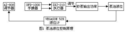 泵池液位自動(dòng)控制功能的實(shí)現(xiàn),是由VEGASON52K液位計(jì)將檢測到的液位信號(hào),轉(zhuǎn)換成4-40mA的電流輸出信號(hào),經(jīng)電阻進(jìn)到調(diào)節(jié)器,調(diào)節(jié)器作數(shù)據(jù)分析處理后,根據(jù)控制功能參數(shù)的設(shè)置要求,驅(qū)動(dòng)中間繼電器1ZJ或者2ZJ,控制ZKJ-210執(zhí)行機(jī)構(gòu)的正、后轉(zhuǎn),調(diào)節(jié)砂泵液力耦合器的油量,從而達(dá)到增大或減少砂泵輸出功率,穩(wěn)定泵池液面的目的。