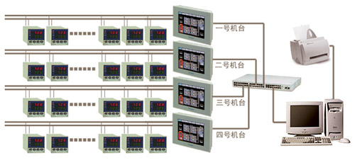 翔鷺滌綸紡纖HDT-3T機(jī)臺(tái)現(xiàn)場總線型溫控系統(tǒng)采用AIBUS現(xiàn)場總線型總體設(shè)計(jì),以AI-2000工業(yè)級(jí)觸摸屏電腦作為上位機(jī),多臺(tái)AI調(diào)節(jié)器通過AIBUS通訊協(xié)議現(xiàn)場聯(lián)接,觸摸屏電腦直接與AI調(diào)節(jié)器通過RS-485串行通訊實(shí)現(xiàn)90個(gè)通道溫度集中監(jiān)控。AI調(diào)節(jié)器上的所有參數(shù)可以在觸摸屏中顯示,也可用觸摸屏電腦設(shè)定下載,數(shù)據(jù)顯示刷新率高,便于實(shí)時(shí)監(jiān)控,溫度控制在±0.1℃。本系統(tǒng)同時(shí)監(jiān)控四條拉絲生產(chǎn)線。