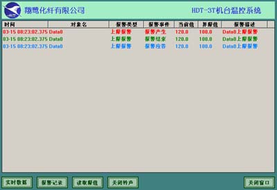 系統(tǒng)按照客戶的要求設(shè)置好報(bào)警產(chǎn)生時(shí)間、形式、長短和解除方式,實(shí)時(shí)快速準(zhǔn)確的進(jìn)行報(bào)警。并保存每一次報(bào)警的報(bào)警類型、報(bào)警時(shí)間、應(yīng)答時(shí)間、結(jié)束時(shí)間、報(bào)警時(shí)報(bào)警后的實(shí)時(shí)數(shù)據(jù)、操作人員等,客戶需要的信息,對(duì)報(bào)警數(shù)據(jù)的查詢更可方便客戶進(jìn)行事故分析。