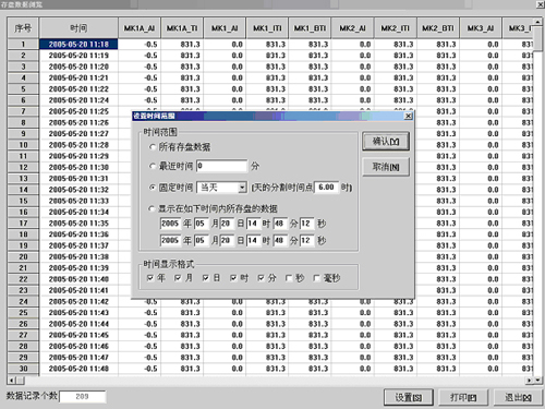 ㈡“報(bào)表查詢(xún)”軟件數(shù)據(jù)庫(kù)記錄間隔為1分鐘,可記錄1年的數(shù)據(jù)。分5張報(bào)表,數(shù)據(jù)報(bào)表A、數(shù)據(jù)報(bào)表B、數(shù)據(jù)報(bào)表C、數(shù)據(jù)報(bào)表D和報(bào)警表報(bào)。(數(shù)據(jù)可按時(shí)間查詢(xún))如下: