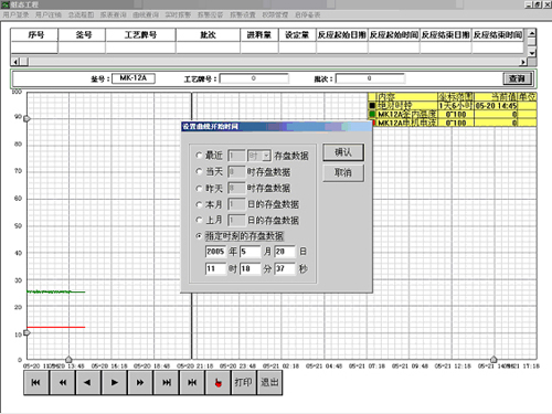 生產(chǎn)過(guò)程及物料狀態(tài)可完全由計(jì)算機(jī)生成實(shí)時(shí)曲線和報(bào)表進(jìn)行監(jiān)測(cè)和控制,所有相關(guān)歷史數(shù)據(jù)都用ACCESS數(shù)據(jù)庫(kù)進(jìn)行保存,有完善的歷史報(bào)表、曲線以便日后查詢(xún)。