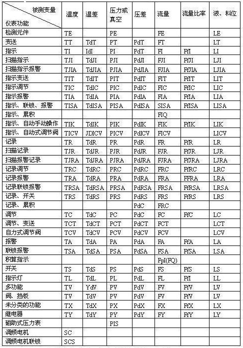| 被測變量和儀表功能的字母代號(hào) |